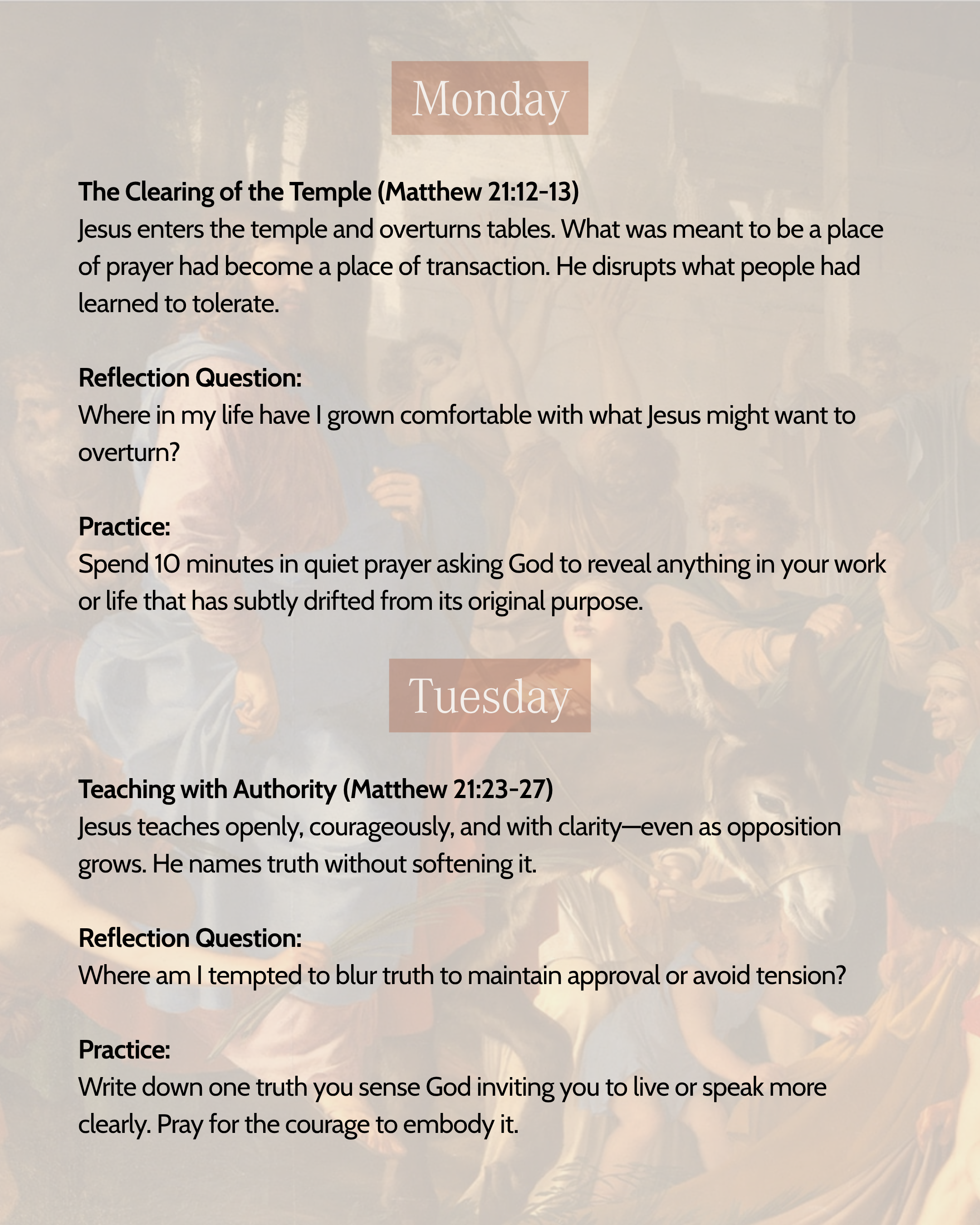 Monday: The Clearing of the Temple (Matthew 21:12-13)